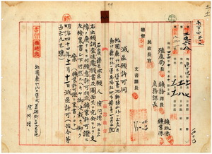 八 鉱業人総代徐阿増ト共同者張石渓・張玉富・羅進房ヨリ出願ノ桃園庁ト新竹庁両管内ニ於ケル石炭鉱区減区願ニ付キ許可ノ件(指令第五五九三号)