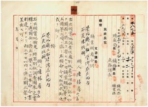 鉱業人名義誤記ニ付キ台北庁管内石炭鉱区鉱業人名義ヲ村山嘉吉ヨリ村山嘉吉郎ヘ訂正願許可ノ件(指令第五九二七号)五 狼四郎ヨリ小河俊蔵ヘノ台北庁管内ノ砂金鉱区鉱業権譲渡願許可ノ件(指令第五九二三号)