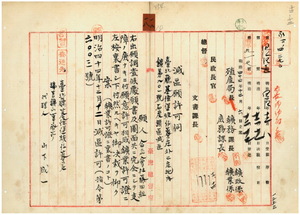 一八 合名会社藤田組代表社員藤田伝三郎ヘ台北庁管内ノ石炭鉱区減区願許可ノ件(指令第六〇〇三号)
