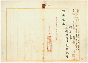 一一 台湾総督府土木部長内田嘉吉ノ申達ニ依リ実父死去ニ付キ忌引中ノ台湾総督府土木部技師国弘長重ヘ除服出仕ヲ命ス