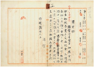 一五 台湾総督府民政部通信局長持地六三郎ノ内申ニ依リ郵便事業及ヒ交運視察ノ為メ南清及ヒ英領香港ヘ出張中ノ台湾総督府事務官伊藤金弥ヘ上海及ヒ漢口ヘモ出張ヲ命ス