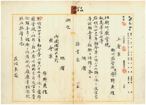 二四 台湾総督府民政部内務局長亀山理平太ノ内申(明治四四年一月一三日)ニ依リ新竹庁警部宇野英種ヲ新竹庁警視ニ任シ高等官七等ニ叙シ新竹庁警務課長ヲ命シ台湾総督府民政部蕃務本署長大津麟平ノ内申(明治四四年二月一八日)ニ依リ新竹庁警視宇野英種ニ蕃務課長兼務ヲ命ス(明治四四年二月一八日)