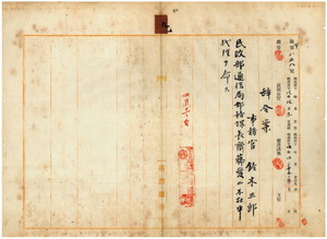 九 台湾総督府民政部通信局長事務取扱鈴木三郎ノ内申ニ依リ台湾総督府事務官鈴木三郎ニ民政部通信局郵便課長斎藤愛二不在中ノ代理ヲ命ス
