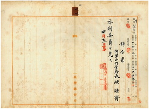 一一 台湾総督府土木部長内田嘉吉ノ内申ニ依リ台湾総督府阿里山作業所長峡謙斉ノ水利委員ヲ免ス