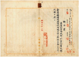 農事試驗場技師小田代慶太郎農事試驗場主事不在中代理ヲ命ス