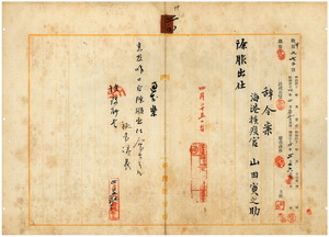 二〇 母方叔父死去ニ付キ忌引中ノ台湾総督府海港検疫官山田寅之助ニ除服出仕ヲ命ス