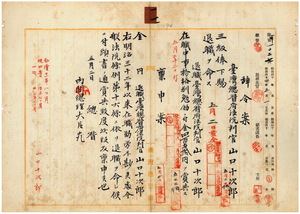一一 台北地方法院判官台湾総督府法院判官山口十次郎ハ疾病ニ羅リ職ニ堪ヘサル旨ヲ以テ退職願ニ依リ昇級ノ上退職ヲ命シ(五月二日付)在職中事務格別勉励ニ付キ一時金ヲ賞与ス(五月二二日付)
