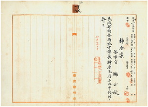 一七 台湾総督府民政部内務局長亀山理平太ノ内申ニ依リ台湾総督府参事官楠正秋ニ民政部内務局地方課長榊原毛乃不在中ノ代理ヲ命ス