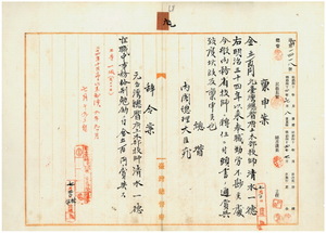九 台湾総督府土木部長内田嘉吉ノ内申ニ依リ元台湾総督府土木部技師清水一徳ニ在職中事務格別勉励ニ付キ一時金賞与ス