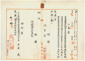 一〇 台湾総督府国語学校長隈本繁吉ノ内申ニ依リ台湾総督府視学官兼台湾総督府国語学校教授渡部春蔵(八月五日付)・台湾総督府国語学校教授兼台湾総督府国語学校舎監高橋憲一(八月五日付)・台湾総督府国語学校教授兼台湾総督府国語学校舎監大石和太郎(八月五日付)・台湾総督府国語学校助教授兼台湾総督府国語学校舎監宇井英(七月七日付)ノ兼官ヲ免ス