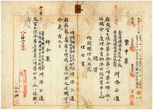 一 台北医院長代理稲垣長次郎ノ内申ニ依リ台湾総督府医院医長兼台湾総督府医学校教授川添正道ニ疾病ニ付キ当分快復ノ見込無キ為メ文官分限令第一一条第一項第四号ニ依リ休職ヲ命ス