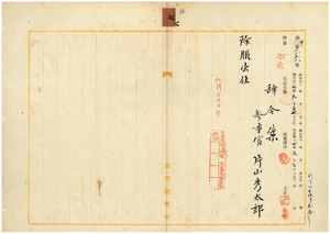 七 台湾総督府参事官室ノ内申ニ依リ台湾総督府参事官片山秀太郎ニ除服出仕ヲ命ス