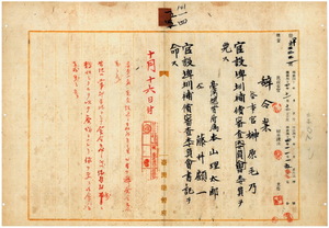 一四 台湾総督府民政部土木局長事務取扱内田嘉吉ノ内申ニ依リ台湾総督府参事官榊原毛乃ノ官設埤圳補償審査委員ヲ免シ、台湾総督府属ノ本山理太郎ト藤井顧一ニ官設埤圳補償審査委員会書記ヲ命ス