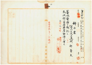 八 台湾総督府民政部蕃務本署長大津麟平ノ内申ニ依リ台北医院医員阿部賚夫ニ蕃地医務ヲ嘱託シ民政部蕃務本署勤務ヲ命ス