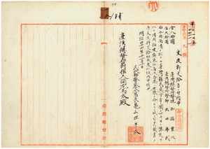 一八 台湾総督府民政部警察本署長亀山理平太ヨリ台湾総督府警視加福豊次ト台湾総督府警部出田虎武ヘ南清ニ於ケル台湾籍民処分方ニ関シ福建・広東・香港ヘ出張支度料支給方ニ付キ内申ノ件
