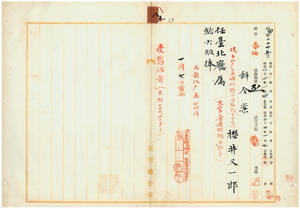 八 台北庁長井村大吉ノ内申ニ依リ元彰化庁属ニテ現在台北庁公共埤圳連合会嘱託ノ桜井又一郎ヲ台北庁属ニ任ス九 台北庁長井村大吉ノ内申ニ依リ元台湾総督府専売局書記兼台湾総督府属ニテ現在台北庁土木事務嘱託ノ関謙良ヲ台北庁属ニ任ス