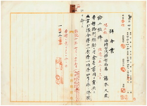 一四 臨時台湾糖務局長内田嘉吉ノ内申ニ依リ臨時台湾糖務局属藤本大蔵ニ昇級ノ上事務格別勉励ニ付キ一時金ヲ賞与シ文官分限令第一一条第一項第四号ニ依リ休職ヲ命ス