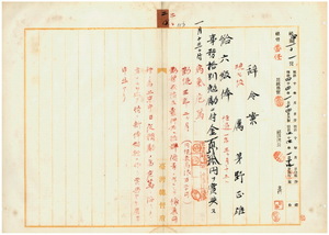 二〇 台湾総督府民政部財務局長中川友次郎ノ内申ニ依リ病気危篤ニ陥リタル財務局主計課勤務台湾総督府属茅野正雄ニ昇級ノ上事務格別勉励ニ付キ一時金ヲ賞与ス