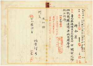 二六 桃園庁長西美波ト台北庁長井村大吉ノ内申ニ依リ台北庁隘勇線ヲ桃園庁ニ編入シタル為メ蕃務ニ従事スル警部トシテ台北庁通訳兼台北庁警部中間市之助ヲ桃園庁通訳兼桃園庁警部ニ任ス