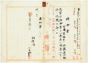 四〇 台南庁長松木茂俊ノ電報内申ニ依リ旧式糖謙許可ニ関スル収賄嫌疑ニテ身柄ヲ拘禁セラレタル台南庁技手佐藤透一郎ニ文官分限令第一一条第一項第二号ニ依リ休職ヲ命ス