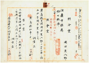 四六 台中庁長枝徳二ノ内申ニ依リ林業事務ニ従事セシメル為メ元農商務省林務官補岡田亥八郎ヲ台中庁属ニ任ス