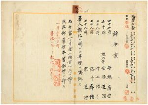 六七 台湾総督府民政部蕃務本署長大津麟平ノ内申ニ依リ蕃地教化事務統一ノ為メ阿緱庁蕃地布教事務嘱託毎熊薩雲・南投庁蕃地布教事務嘱託安倍道溟・宜蘭庁蕃地布教事務嘱託井上僧了・台中庁蕃地布教事務嘱託藤井廓幢・新竹庁蕃地布教事務嘱託宗遂浄ニ蕃地教化ニ関スル事務ヲ嘱託シ民政部蕃務本署勤務ヲ命ス
