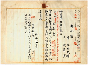 一 台北庁長井村大吉ノ照会ニ依リ台北第四尋常高等小学校教諭ニ採用ノ為メ台湾総督府雇ノ松井文輔ト武藤茂ヲ御用済ニ付キ雇ヲ免ス