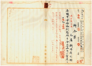 二〇 台湾総督府民政部殖産局長高田元治郎ノ具申ニ依リ疾病ノ為メ職ニ堪ヘサル旨ヲ以テ辞職シタル殖産局元雇新保彦之助ニ在職中事務格別勉励ニ付キ一時金ヲ賞与ス