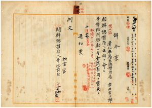 四三 朝鮮総督府朝鮮臨時土地調査局庶務課長ノ照会ニ依リ台北庁属兼台湾総督府属吉田幸次郎ニ朝鮮総督府ヘノ出向ヲ命シ事務格別勉励ニ付キ特別詮議ヲナシ内規ニ増額シテ一時金ヲ賞与ス