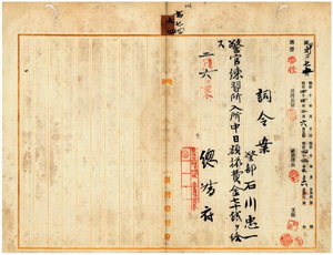 七四 台湾総督府民政部内務局長亀山理平太ノ内申ニ依リ警察協会設立ニ係リ警官練習所ヘ入所ノ為メ同所ヘ派遣セシ警部石川忠一ニ警官練習所入所中日額旅費金七〇銭ヲ給ス