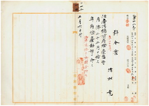 一二 台湾総督府民政部通信局長事務取扱鈴木三郎ノ内申ニ依リ白沙岬灯台勤務台湾総督府雇清水堯ヲ台湾総督府灯台看守ニ任シ卑南灯台勤務ヲ命ス