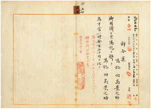 三七 台湾総督府民政部殖産局長高田元治郎ノ具申ニ依リ嘱託向島豊之助ハ御用済ニ付キ嘱託ヲ解キ手当トシテ一時金ヲ給ス