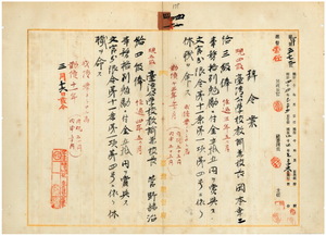 四一 桃園庁長西美波ノ内申ニ依リ桃園公学校勤務台湾公学校教諭兼台湾公学校長岡本幸二ト楊梅会公学校勤務台湾公学校教諭兼台湾公学校長菅野赫治ニ昇級ノ上事務格別勉励ニ付キ一時金ヲ賞与シ文官分限令第一一条第一項第四号ニ依リ休職ヲ命ス