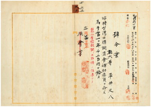 六三 臨時台湾旧慣調査会長内田嘉吉ノ内申ニ依リ蕃族旧慣調査ノ為メ元台北第二尋常高等小学校教諭兼校長小学校教諭ヲ現岡山県立商業学校支那語教官嘱託平井又八ニ臨時台湾旧慣調査会補助委員ヲ命ス