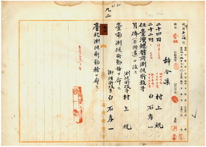 九二 台湾総督府民政部通信局長事務取扱鈴木三郎ノ内申ニ依リ台南測候所勤務台湾総督府雇村上祝ヲ台湾総督府測候所技手ニ任シ台南測候所勤務ヲ命シ、台北測候所勤務台湾総督府雇白石孝一ヲ台湾総督府測候所技手ニ任シ台北測候所勤務ヲ命ス