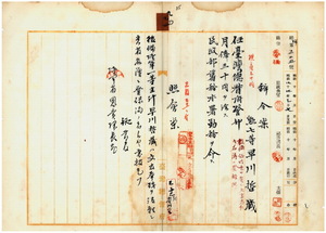 九四 台湾総督府民政部蕃務本署長大津麟平ノ内申ニ依リ後備陸軍一等主計蕃務本署勤務台湾総督府雇早川哲蔵ヲ台湾総督府警部ニ任シ民政部蕃務本署勤務ヲ命ス