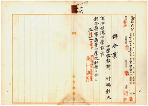 一二六 台中庁長枝徳二ノ内申ニ依リ台湾小学校教諭竹嶋彰夫ヲ台湾小学校長ニ兼任シ彰化尋常高等小学校勤務ヲ命ス