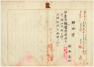 一三 台湾総督府民政部通信局長事務取扱鈴木三郎ノ内申ニ依リ元台湾総督府通信属岡本菊松ヲ台湾総督府通信手ニ任シ阿緱郵便局勤務ヲ命ス