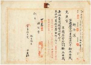 五一 台湾総督府民政部蕃務本署長大津麟平ノ内申ニ依リ扇海丸砲術長トシ教練実地操砲等ノ必要ニ依リ宜蘭庁警部兼台湾総督府技手鈴木由蔵ノ兼官ヲ免シ台湾総督府警部ヲ兼任シ民政部番務本署勤務ヲ命ス