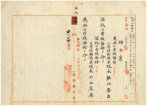 五七 阿緱庁長佐藤謙太郎ト台北庁長井村大吉ノ内申ニ依リ万丹公学校勤務台湾公学校教諭兼校長堀江要吉ニ深坑公学校勤務ヲ命シ、深坑公学校勤務台湾公学校教諭兼校長六山定英ニ万丹公学校勤務ヲ命ス