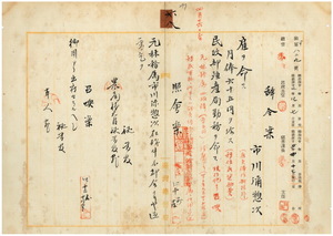 市川彌惣次雇ヲ命スル件