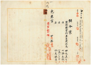 八六 官秘第二〇九号民政長官通達ニ基付ク宜蘭庁長小松吉久ノ内申ニ依リ宜蘭庁警部兼宜蘭庁属ノ田丸直之・七海志朗・小島仁三郎・松尾温爾ノ兼官ヲ免ス
