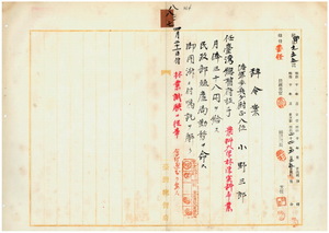 陸軍步兵少尉小野三郎解囑並任府技手ノ件