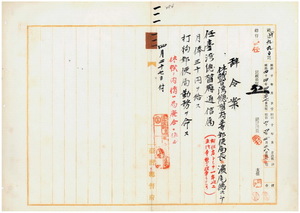 一一一 打狗郵便局長松本平太郎ノ稟申ニ依リ休職台湾総督府三等郵便局長浜尾徳太郎ヲ台湾総督府通信属ニ任シ打狗郵便局勤務ヲ命ス