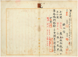 一一九 台湾総督府民政部殖産局長高田元治郎ノ具申ニ依リ御用済ニ付キ解雇シタル台湾総督府雇ノ木佐木敬造ト原口文男ニ事務格別勉励ニ付キ一時金ヲ賞与ス