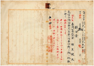 二二 新竹庁長家永泰吉郎ノ内申ニ依リ樹砥林公学校勤務台湾公学校教諭石黒健夫ニ文官分限令第一一条第一項第四号ニ依リ休職ヲ命ス