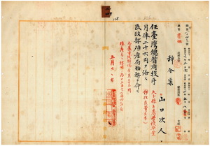 山口次人總督府技任命ノ件