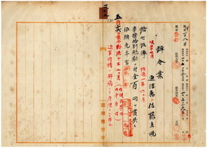 三二 台北郵便局勤務台湾総督府通信属佐藤直視ハ疾病ニ罹リ職ニ堪ヘサル旨ヲ以テ辞職願ニ依リ昇級ノ上事務格別勉励ニ付キ一時金ヲ賞与シ本官ヲ免ス