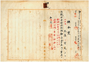 四三 台湾総督府民政部通信局長心得代理鈴木三郎ノ内申ニ依リ五月九日付ニテ御用済解職トナリタル元雇笹尾タケニ在職中事務格別勉励ニ付キ一時金ヲ賞与ス