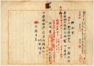 四四 新竹庁長家永泰吉郎ノ内申ニ依リ家事ノ都合ニテ退官ヲ願出タル新竹庁税務吏下森芳治ニ事務格別勉励ニ付キ一時金ヲ賞与ス